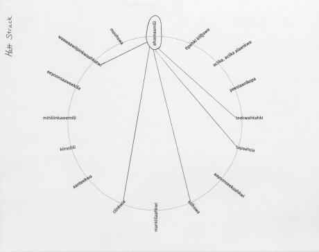 What follows is a record of a student’s observations from kišiinkwia kiilhswa (July/August 2009) to cecaahkwa kiilhswa (April/May 2010). Each student was asked to observe one feature (plant, tree, animal, celestial body, or weather phenomena) and its connections to other features. In addition each student was asked to visually represent these connections by constructing a visual web.