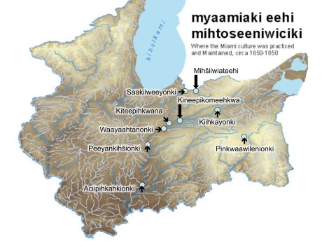[1] Waapanaakikaapwa (Gabriel Godfroy) told this story to J.P. Dunn in the early 1900s. See “Where the Miamis First Came From” in David Costa ed., myaamia neehi peewaalia aacimoona neehi aalhsoohkana – Myaamia and Peoria Narratives and Winter Stories, (Oxford, Ohio: Miami Tribe of Oklahoma and the Peoria Tribe of Oklahoma, forthcoming), 52-53.