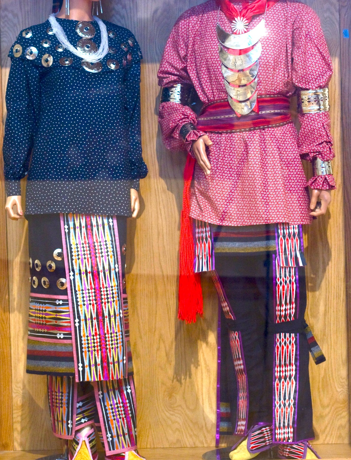 Today, the daily clothing of most Myaamia people does not differ all that much from our neighbors. But on special occasions like social dances, political gatherings, weddings, funerals, parades, and other community gatherings many Myaamia people still wear a combination of wool, cotton, and hide decorated with beadwork and or ribbonwork.