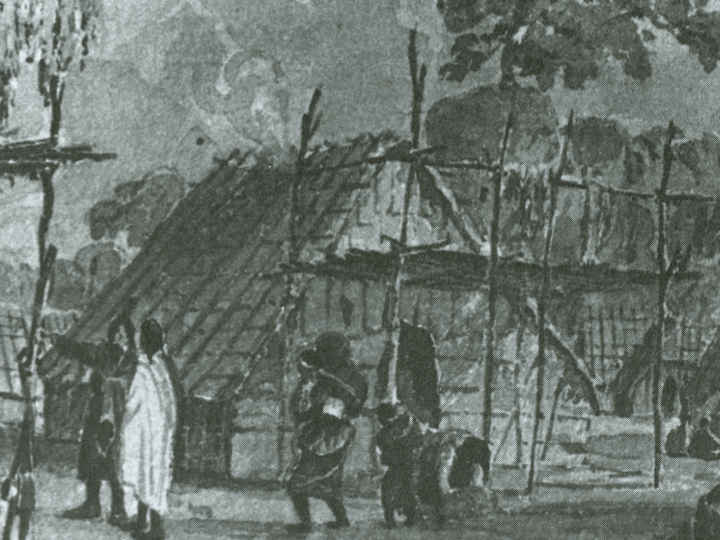 Beginning in the late 1700s, Myaamia people began to incorporate European architecture into their villages. By the middle 1800s, every village had quite a few structures that looked like the cabins their settler neighbors were building. In addition, leaders oftentimes had brick or wood frame houses built for them. These chief’s houses, served as important locations for trade, treaty negotiation, and tribal council meetings.