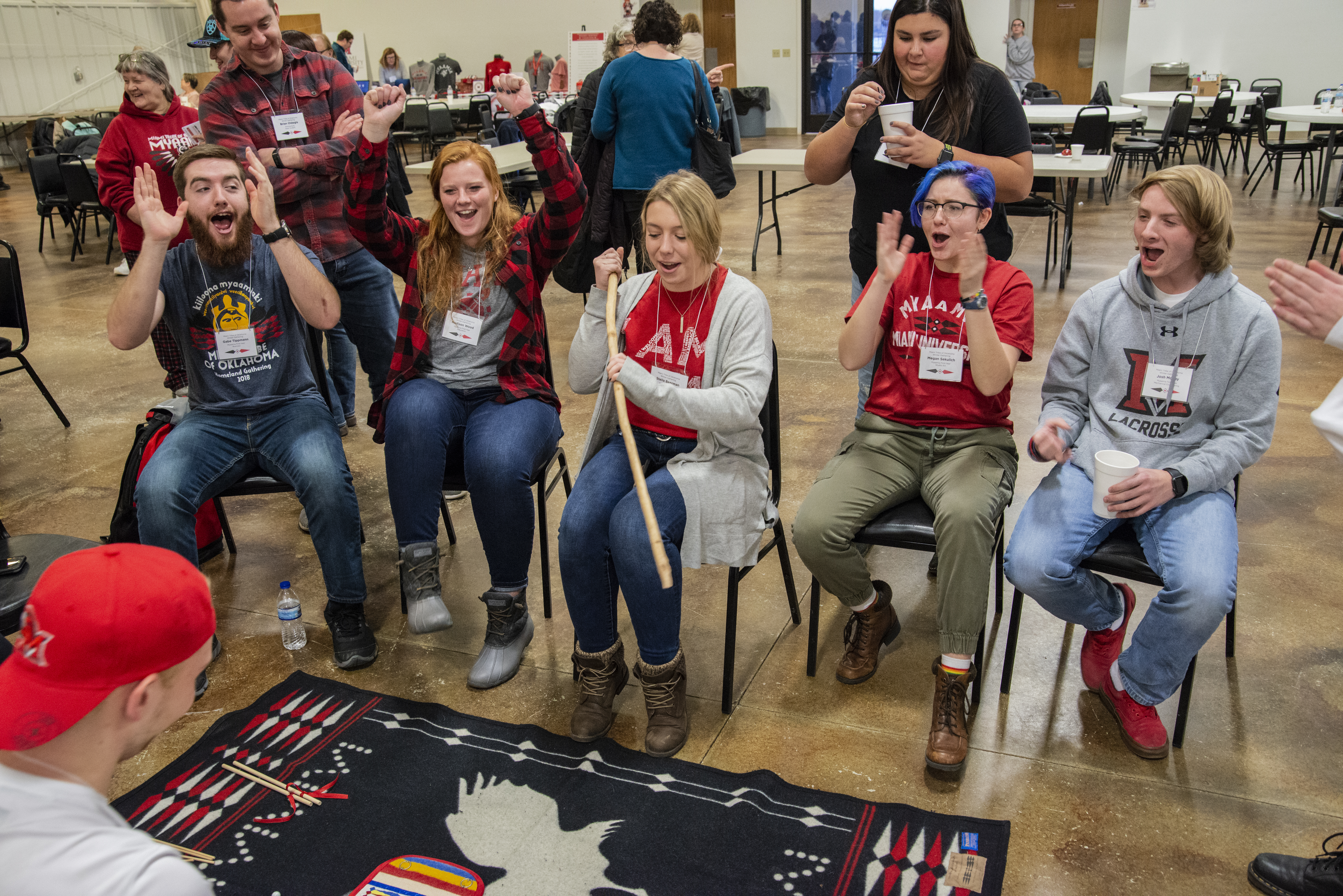 For the first couple of decades of the relationship, it was focused primarily on educating the Miami University community about the Miami Tribe. After Chief Floyd Leonard was elected in 1974, he would often come to the University to educate about the Tribe as a contemporary Nation. He would often bring with him other people from the Tribe or even leaders from other Tribes to attend University events and class visits. As the relationship continued to deepen, the focus shifted to the possibility of educating Myaamia students as well. The first Myaamia students enrolled at Miami University as part of the Heritage Award in 1991. What began as simply a tuition waiver for Myaamia students has evolved into a 4-year program where Myaamia students take a series of courses together, attend Myaamia Center events, and receive individualized support and advising. To date, we have had 95 graduates of the Myaamia Heritage Program, and there are 30 Myaamia students currently enrolled at Miami.