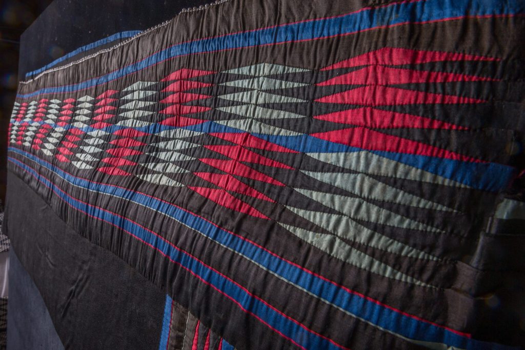 Through an examination of the pieces created by our Myaamia ancestors we learned to identify several geometric patterns that are unique to our community, and from this foundation, we continue to create new patterns. Over time we’ve also learned that the geometric patterns that we find in ribbonwork can be found in many other Myaamia artforms. Most of these geometric patterns produce a ‘shimmering’ effect that Myaamia people continue to find beautiful.