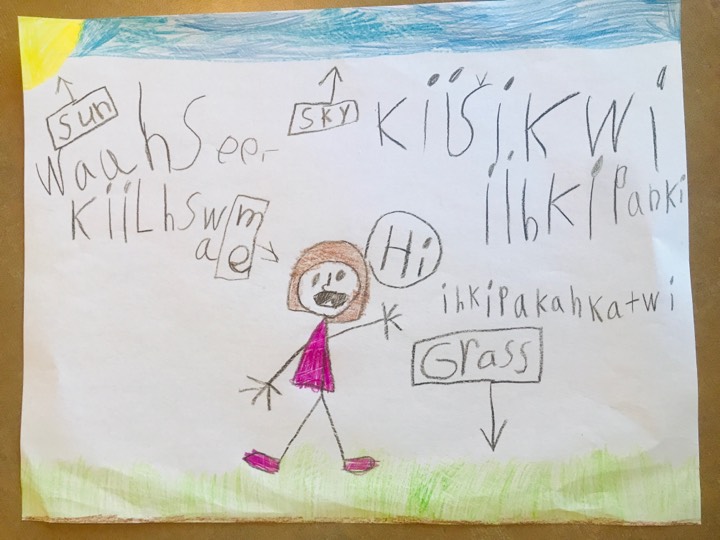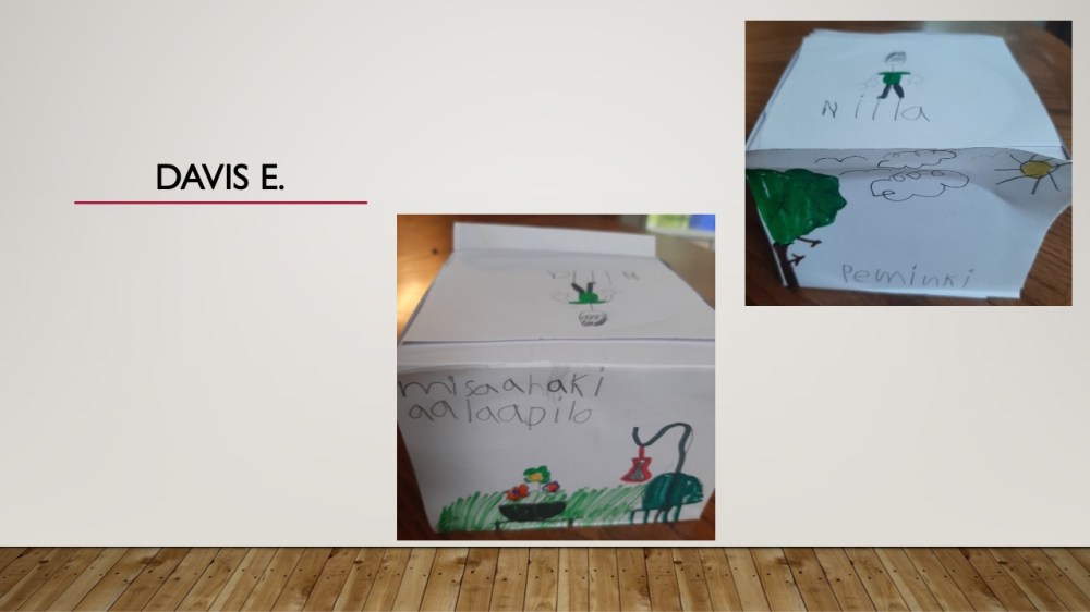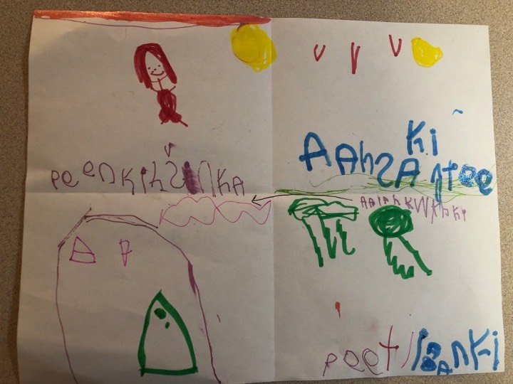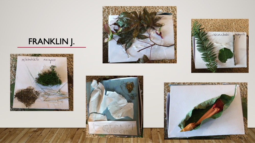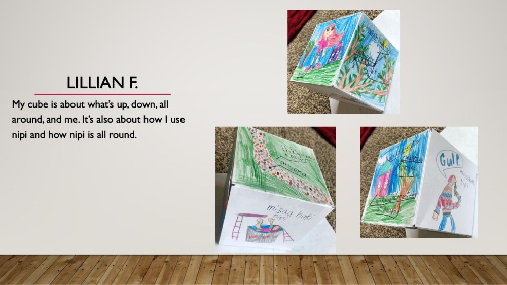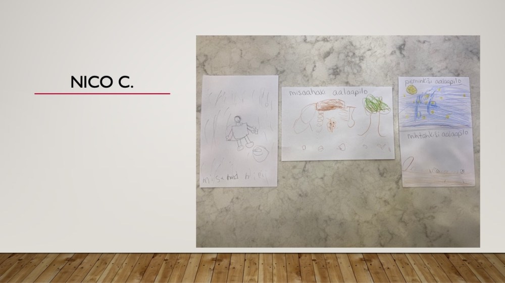Saakaciweeta participants were tasked with observing their surroundings while exploring the area around their homes. From these observations and what they learned throughout the week, they created art projects that depict niila ‘me,’ peminkiši ‘up,’ mihtahkiši ‘down,’ and misaahaki ‘all around.’