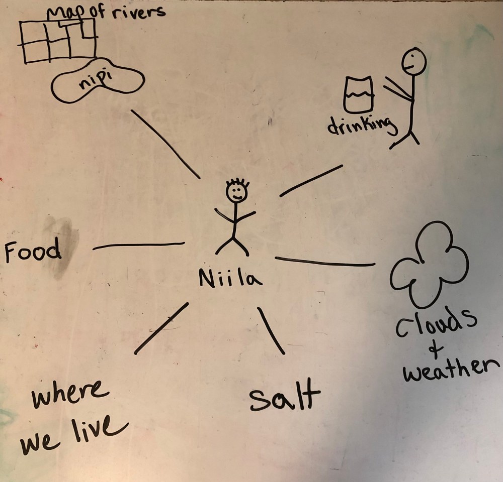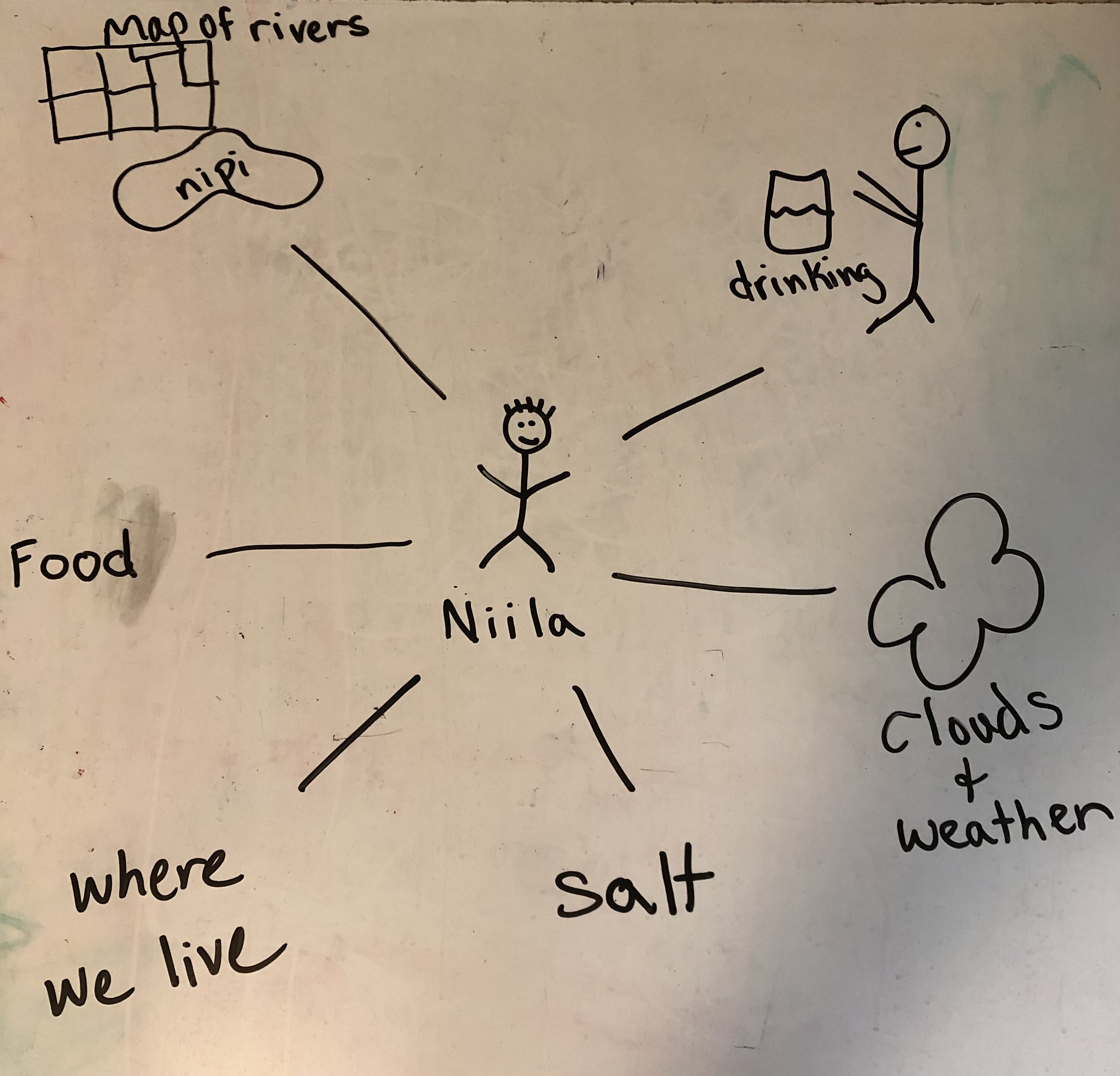 Our Saakaciweeta (ages 6-9), Eewansaapita (ages 10-16), and Neehsapita (adult) programs explored ašiihkiwi neehi kiišikwi ‘Earth and Sky’ with a focus on misaahaki nipi ‘water all around.’ With the help of our relative Tim McCoy, we learned about the role water plays in our daily lives, how it appears in our aacimoona ‘historical narratives’ and aalhsoohkaana ‘Winter Stories,’ and how it shapes our landscape over time.