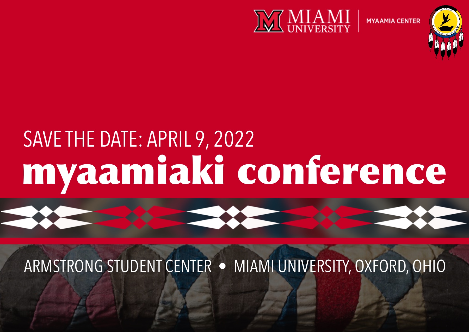 Every two years, the Myaamia Center hosts the Myaamiaki Conference, where Myaamia Center staff present on the work that they have accomplished. This year, the conference will be held on Saturday, April 9th in Armstrong Student Center.