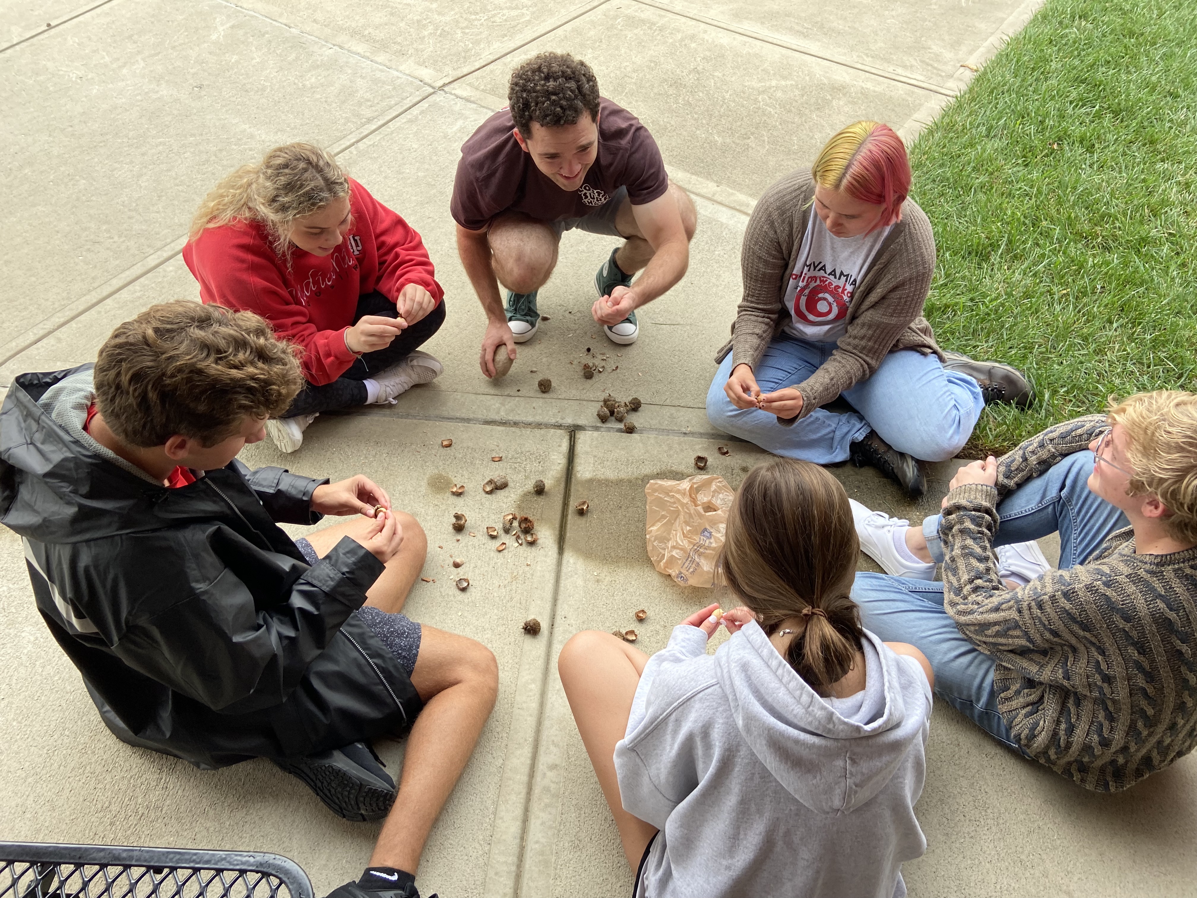 One highlight of this semester is it’s link to Myaamia food. During class, students had the opportunity to process both acorns and persimmons to prepare them for the cooking process. One day of class was set aside solely for eating Myaamia foods, cooked both in historical and contemporary styles. Myaamia Center staff and students provided foods made with corn, bison, squash, persimmons, and pawpaws. The opportunity to come together to eat the foods that we learned about in class was a fun opportunity to synthesize what we learned this semester. Plus all of the food was really tasty!