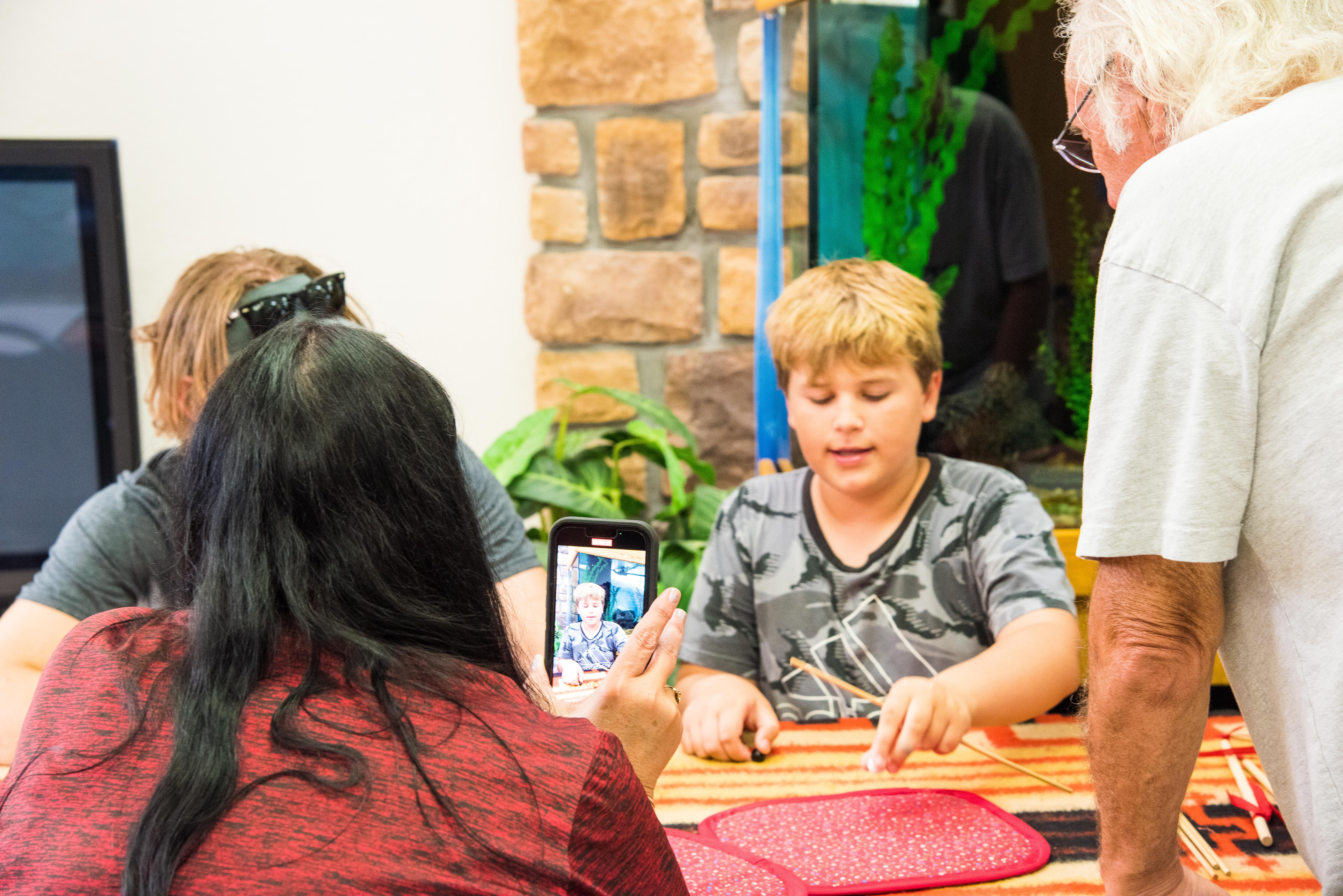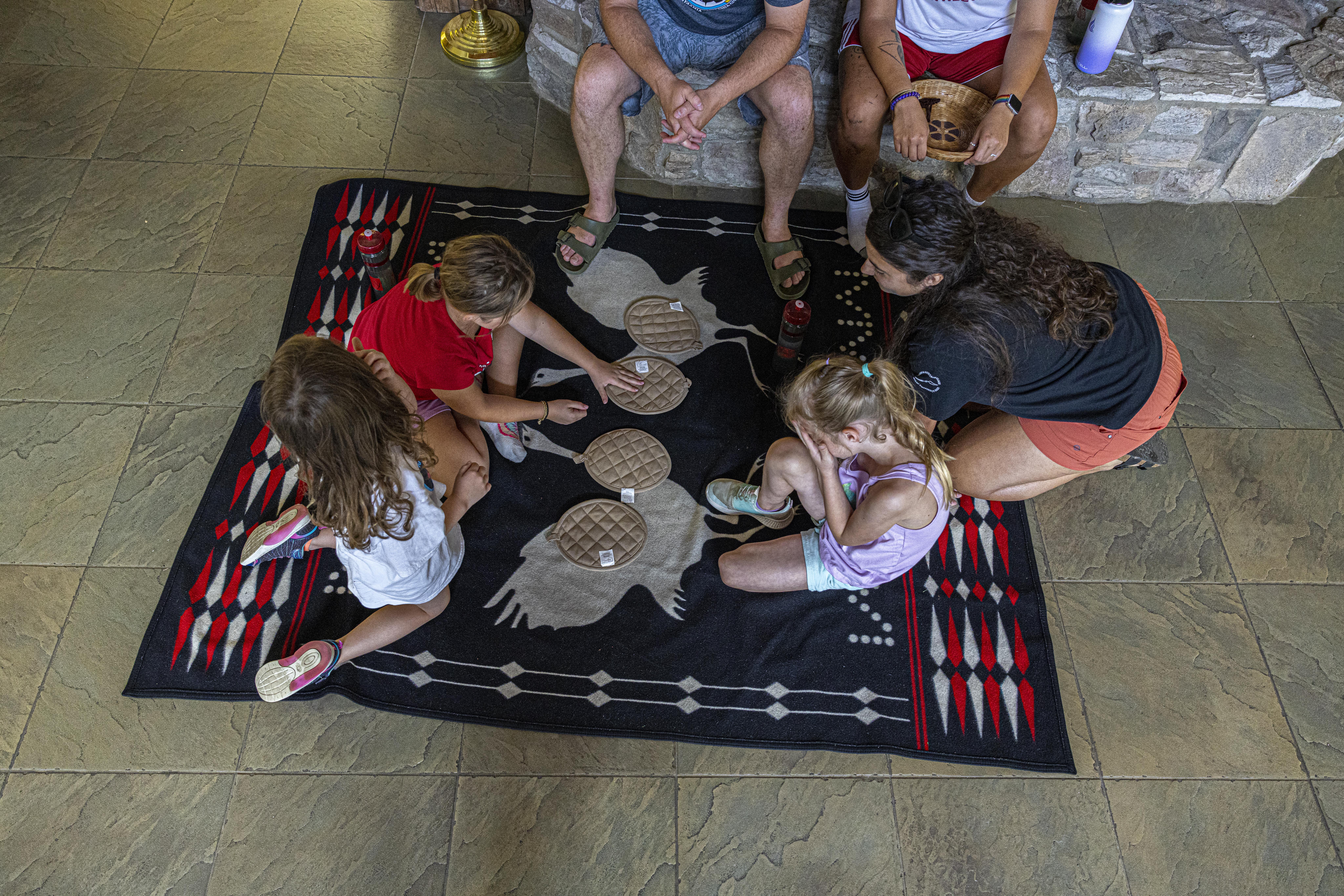 Eewansaapita participants learned about seenseewinki, mahkisina meehkintiinki, peekitahaminki, myaamia paaskoontia ‘Myaamia tossed ball,’ and meelotakahamiinki ‘straw game.’ Each group was also tasked with teaching one of those games at the community celebration at the end of the week. They not only participated in the Seneca-Cayuga game in Oklahoma or community game in Indiana, there was an Eewansaapita mahkisina meehkintiinki tournament in both locations. At the end of the week, they took home a set of seenseewinki game pieces and a wooden pakitahaakani ‘lacrosse stick’ that they created.