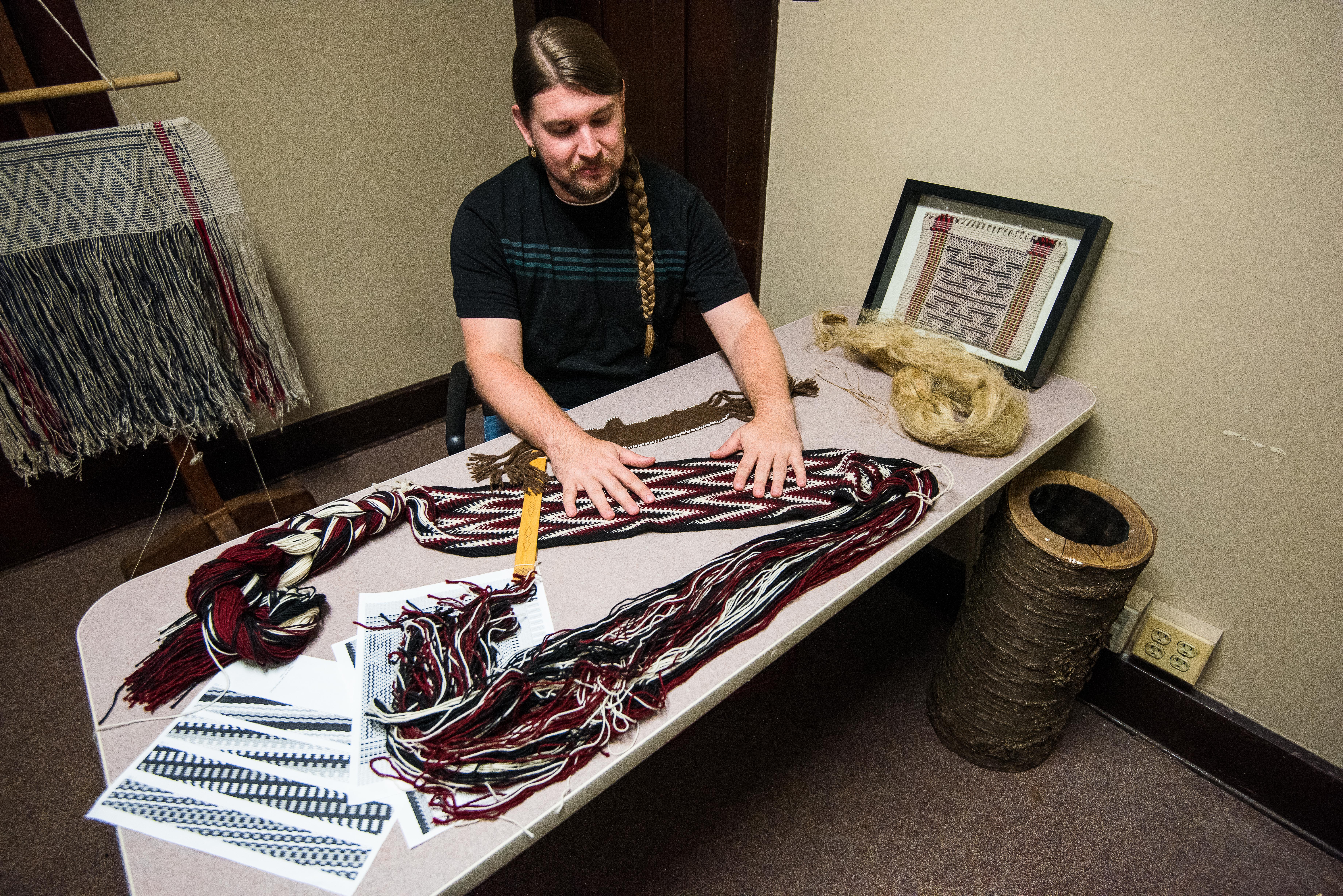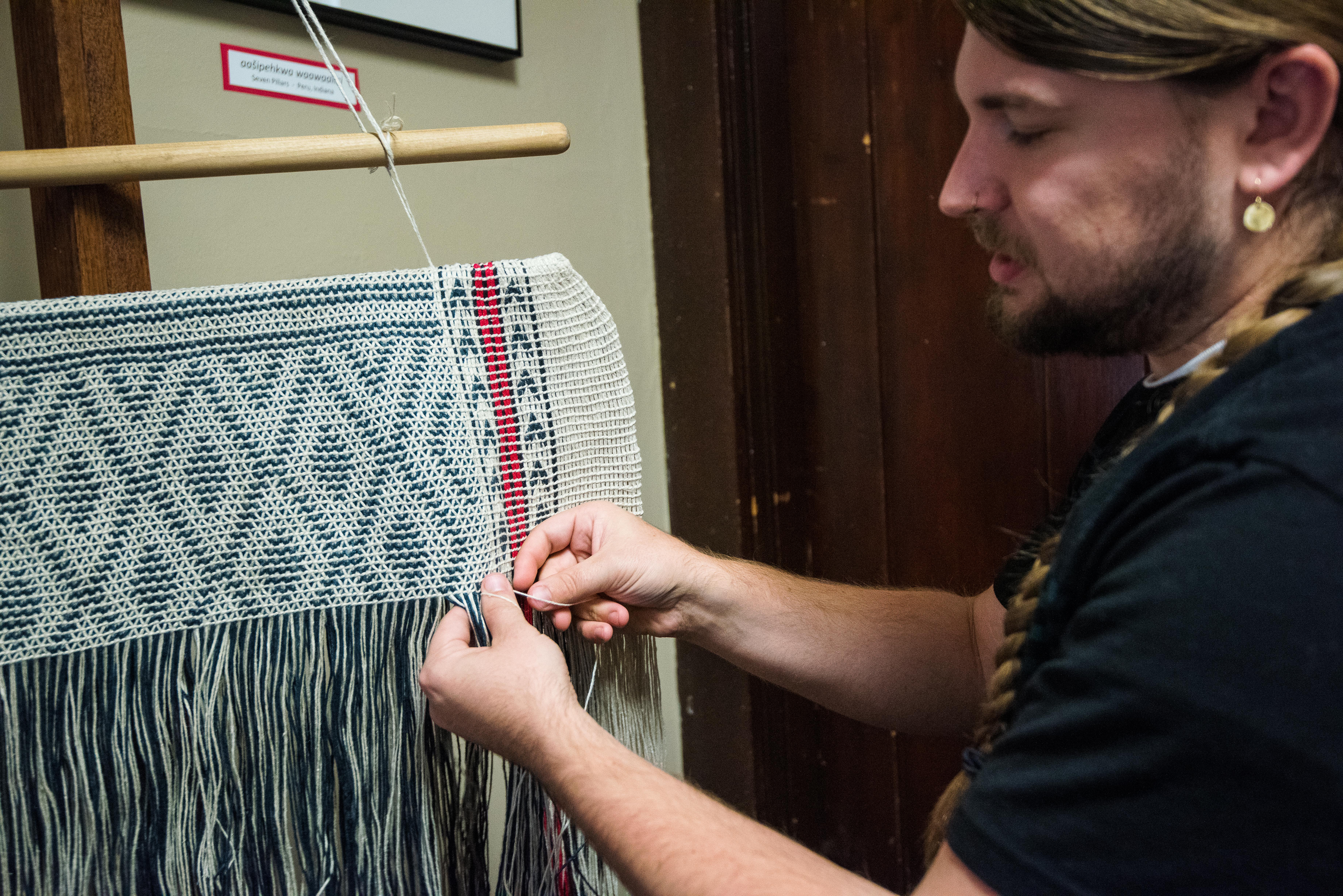 Jared: I think being a weaver has informed how I interact with the community and provided a way for me to give back. I think the biggest thing weaving has allowed me to practice, is what I call “indigeneity” and in a sense, what being a Myaamia person means to me. To give an example, when you start a textile project and learn how to process materials to turn into thread that you turn into the final product, you start looking at the places you live as being able to provide these materials which gives you a sense of how places take care of people. So, I think being a Myaamia person and being a weaver has allowed me to start connecting with our traditional ecology, and that informs how I fit in our community and how I practice Myaamia indigeneity.