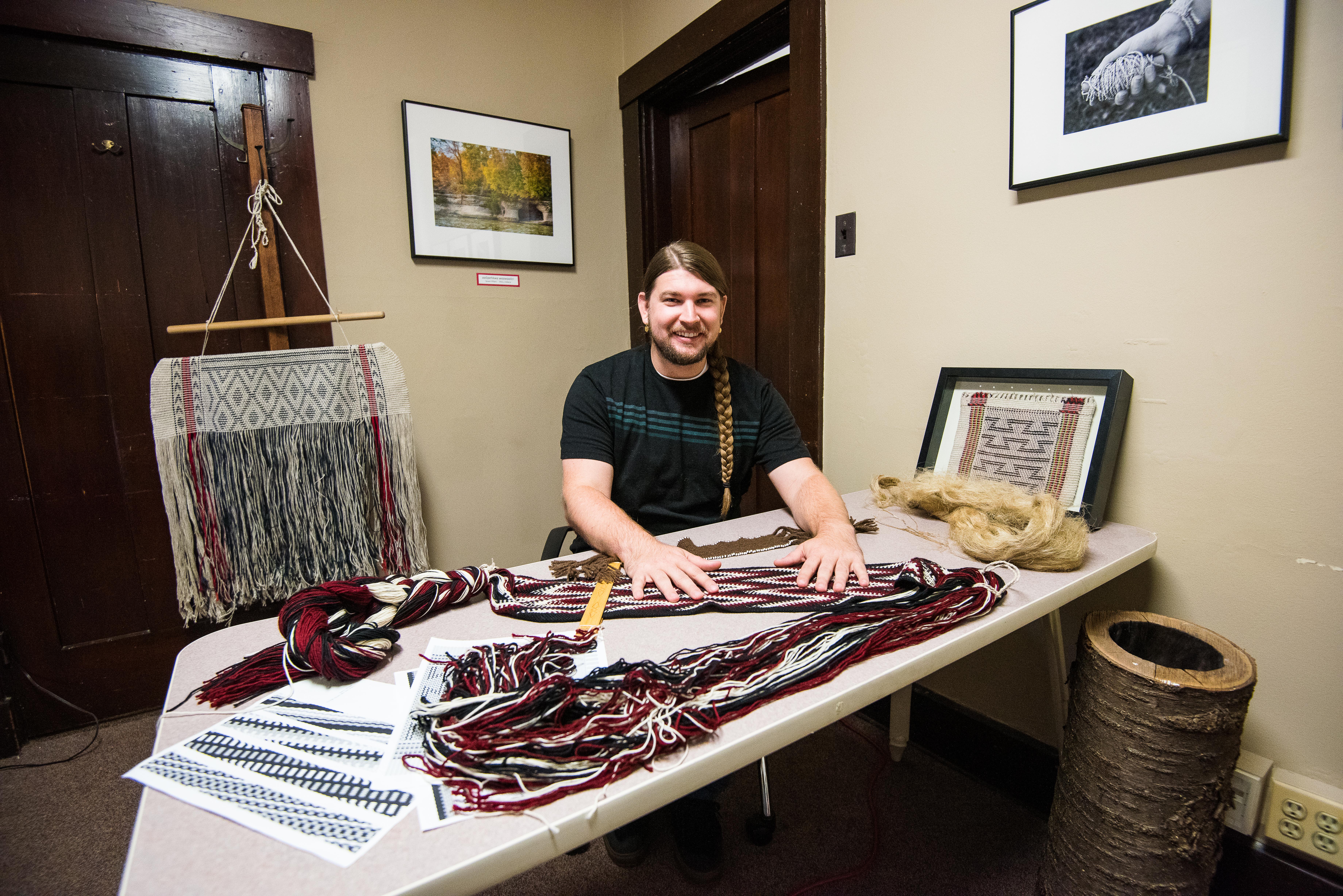 Meet Jared Nally, a Myaamia student who is currently seeking a Master’s degree in Environmental Science at Miami University. He is a recipient of the Aanchtaakia Graduate Fellowship. Aanchtaakia is the Myaamia word meaning ‘change maker.’ This fellowship is specifically designed for tribal scholars motivated to make positive change in tribal communities and to share their research or interests on Miami University’s campus. Jared is a talented weaver and sees his craft as a connection to his community. I was fortunate to be able to spend some time with Jared and conduct an extensive interview. As you will see below he sees his craft as a doorway to giving back to the community and adding to the ongoing revitalization of our cultural ways.