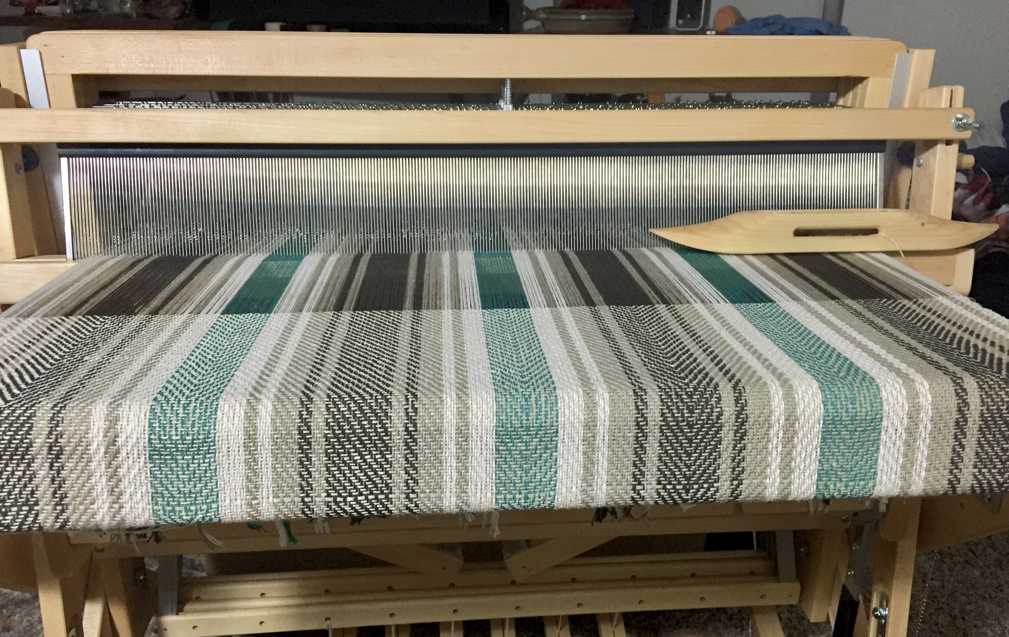 Jared: Yes. And it’s a two-part answer. In grade school, we made little paper plate weavings where you put notches on the side and wove in a circle. So that’s my first very basic idea of what weaving was. But coming to weaving as a practice, I kind of dove headfirst into the deep end, and I did a pretty wide twill piece on a four-shaft loom that I made into a pillow for my sister. That’s, I guess, my first connection to my identity as a weaver.