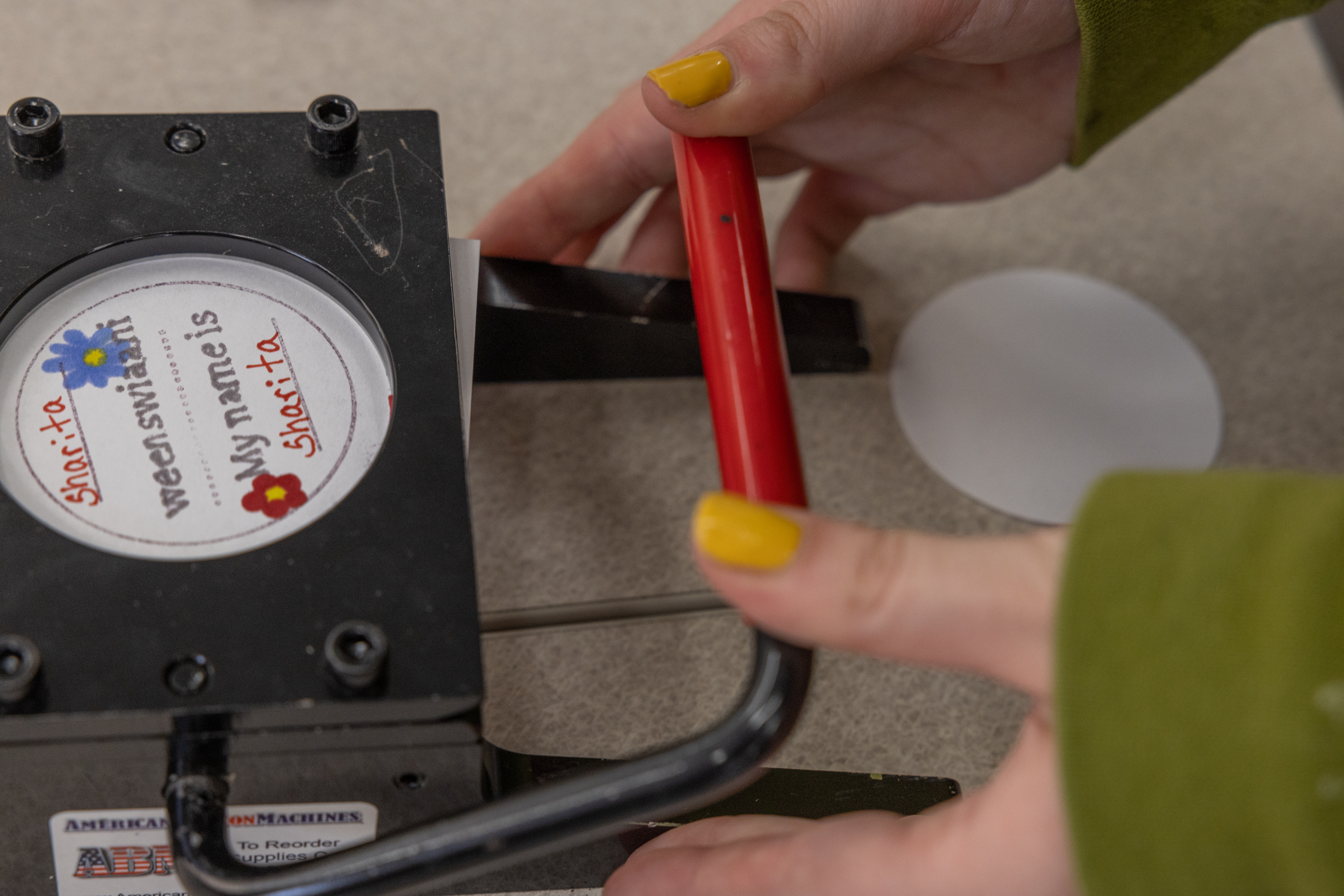 Additionally, we partnered with the Alumni Association on events for Miami’s Alumni Weekend, as well as Grandparents College. During Alumni Weekend, Myaamia Center staff talked with alumni who returned to campus for the event focused on peekitahaminki ‘lacrosse’, and encouraged participants to try throwing, catching, and shooting with a wooden lacrosse stick. Grandparents college is an opportunity for alumni to bring their grandchildren to campus for a few days and includes several different activities that they can take part in. Myaamia Center staff presented on peepankišaapiikahkia eehkwaatamenki ‘ribbonwork’, and then the grandparents and their grandchildren were able to make paper bookmarks inspired by ribbonwork.