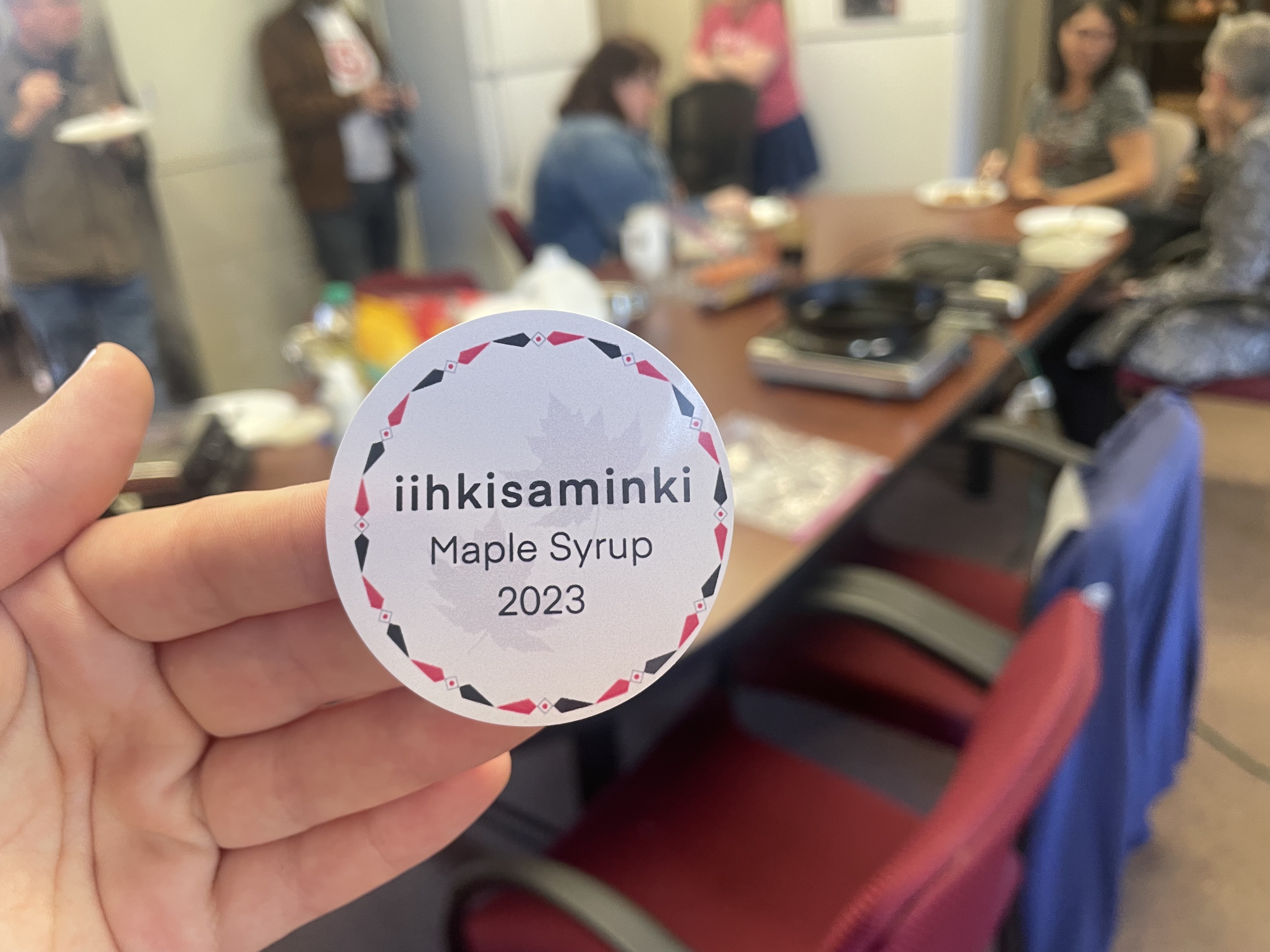 Jared Nally, the Myaamia Center’s Aanchtaakia Graduate Fellow, led a finger-weaving workshop where he shared knowledge about Myaamia weaving practices. Other events included the annual pancake breakfast to enjoy fresh Maple syrup collected and processed by Myaamia staff and students on Miami University’s campus, as well as a day to make buckeye necklaces to take a break from studying during the week of final exams.