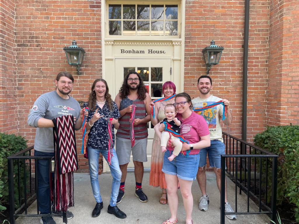This past weekend, on May 13, we hosted our final event on campus for the semester, a graduation celebration. We gathered outside the Myaamia Center with the 7 Myaamia Heritage Program graduates and their guests, to celebrate their accomplishments at Miami University and the Myaamia Heritage Program. Each graduate was presented with several gifts to celebrate and commemorate their time in the Myaamia Heritage Program at Miami University.
