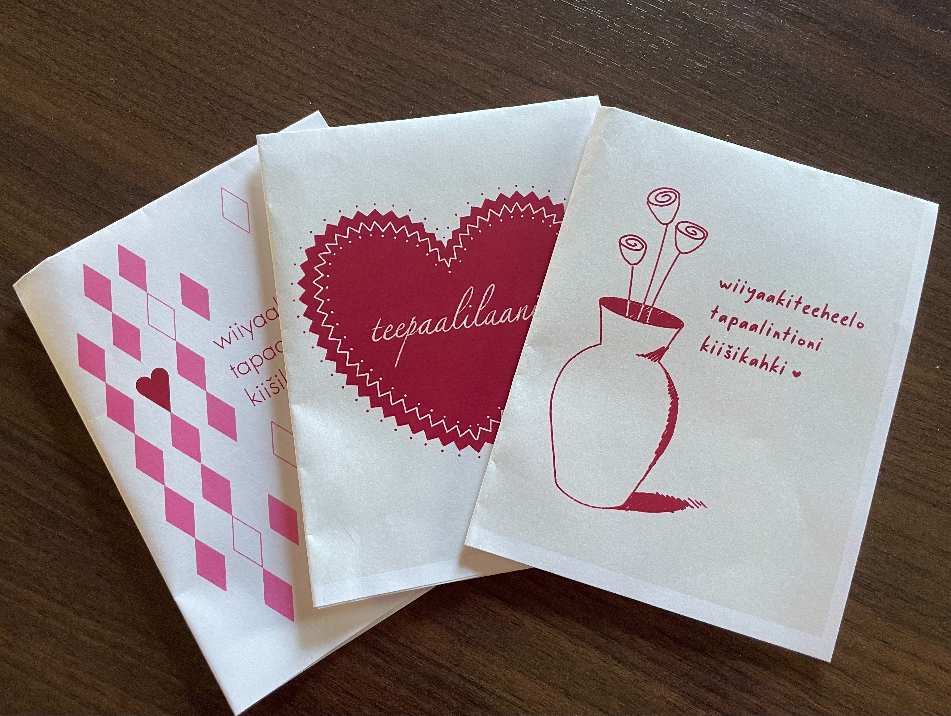 Wiiyaakiteeheelo tapaalintioni kiišikahki which means ‘Celebrating a day of love’ or ‘Happy Valentine’s Day.’