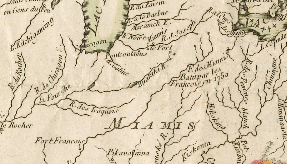 - Pierre François Xavier de Charlevoix (1682-1761), in 1721, during his stay at Fort Saint-Joseph in August and September, he studies the Miami Tribe and writes “Fifty years ago the Miamis were settled on the southern extremity of Lake Michigan, in a place called Chicago, from the name of a small river that runs into the lake.” ↩︎