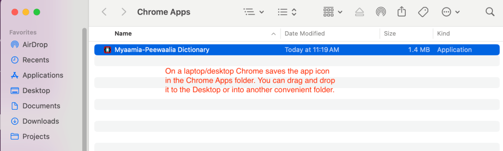 The new Myaamia dictionary is a web application, rather than a mobile application meaning it can be added to any device, including desktops, laptops, tablets, and, of course, mobile phones. Since it’s a web application, it is not available in the app store but must be downloaded from a web browser.