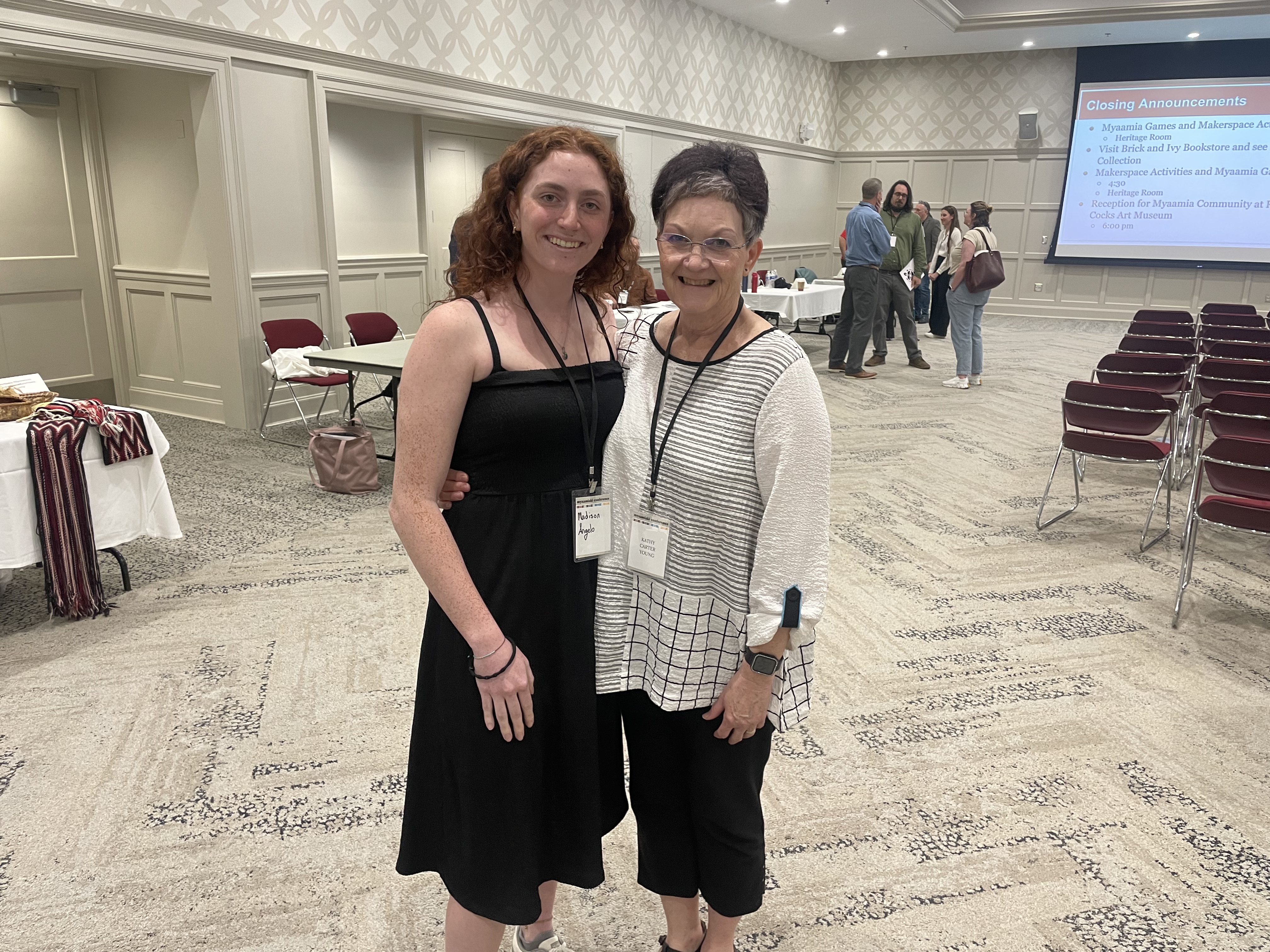 When Madison Angelo and Kathy Carter Young saw each other at the 10th biennial Myaamiaki Conference, the two women’s faces lit up as they embraced for a hug, before immediately jumping into excited greetings and laughter.