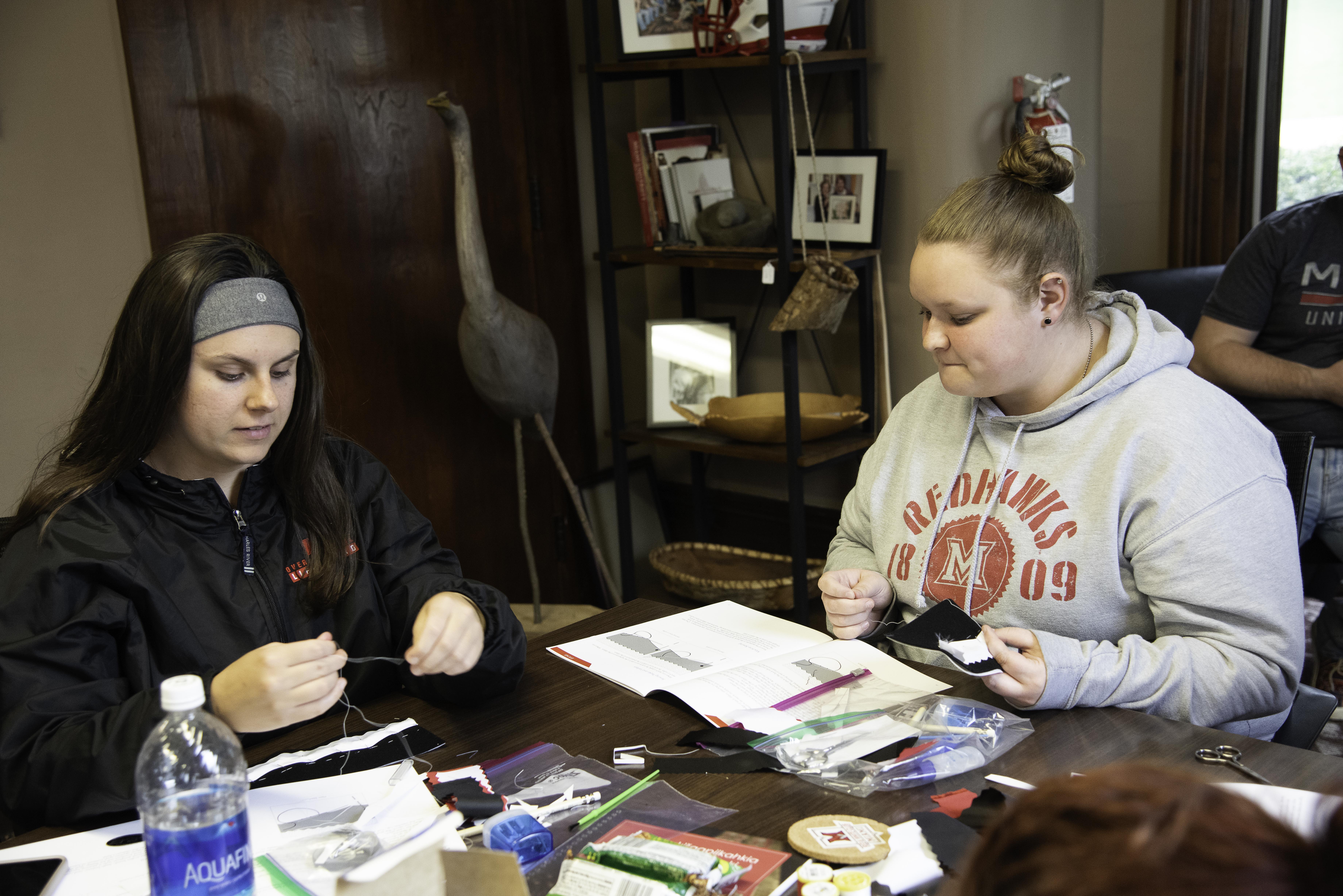 And that brings us to a classic sewing project: ribbonwork. We’ve uploaded a digital copy of the peepankišaapiikahkia eehkwaatamenki ‘Myaamia Ribbonwork’ book. This publication discusses the history of ribbonwork, provides step-by-step directions for creating ribbonwork (including 3 project patterns), and gives examples of both contemporary and historic ribbonwork pieces. We’re also developing additional resources, including tutorial videos, on how to create ribbonwork. And for anyone who just wants to look at beautiful ribbonwork pieces, I highly recommend the online Myaamia Ribbonwork Exhibit hosted by the Richard and Carole Cocks Art Museum at Miami University or the walk through videos of the same exhibit.
