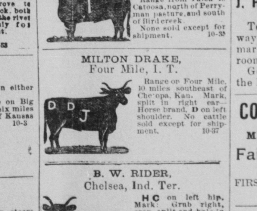 Milton started a sawmill business around the Neosho River bottoms, west of where the Drake House stands today. He and Jane also owned Milt Drake & Company. “We always have horses, mules, wagons and harness for sale cash or on time.”