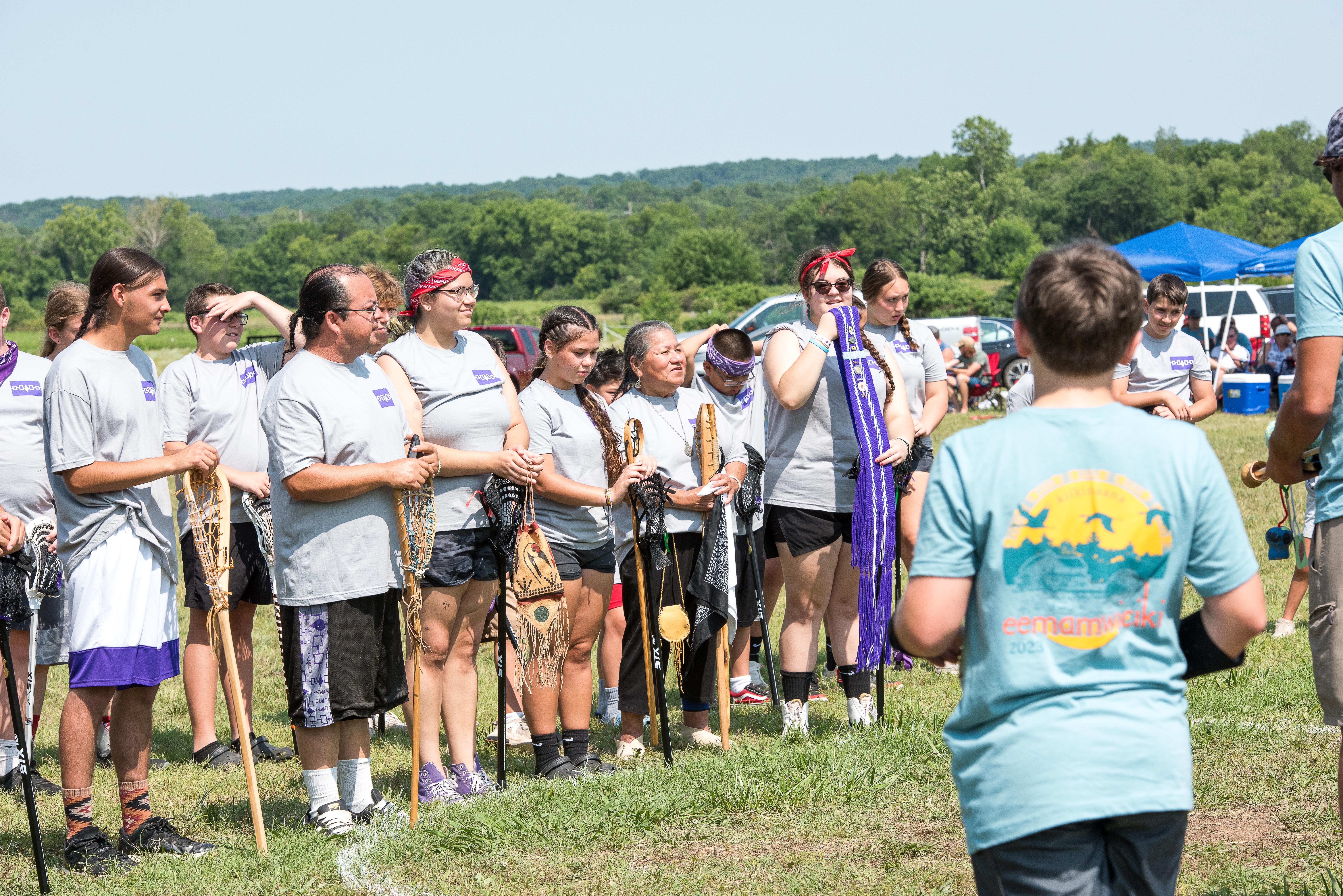 The very next summer after I met Adnan and started playing at UIC, I brought what I was learning back to the Myaamia community. I quickly began to collect used sticks from local Play it Again Sports and eBay (which was brand new at the time). With this limited equipment and the little bit of experience I had gained, I began to teach others how to throw, catch, cradle, and shoot. When we played at our language camps, we did not use protective equipment, a practice that we maintain to this day.