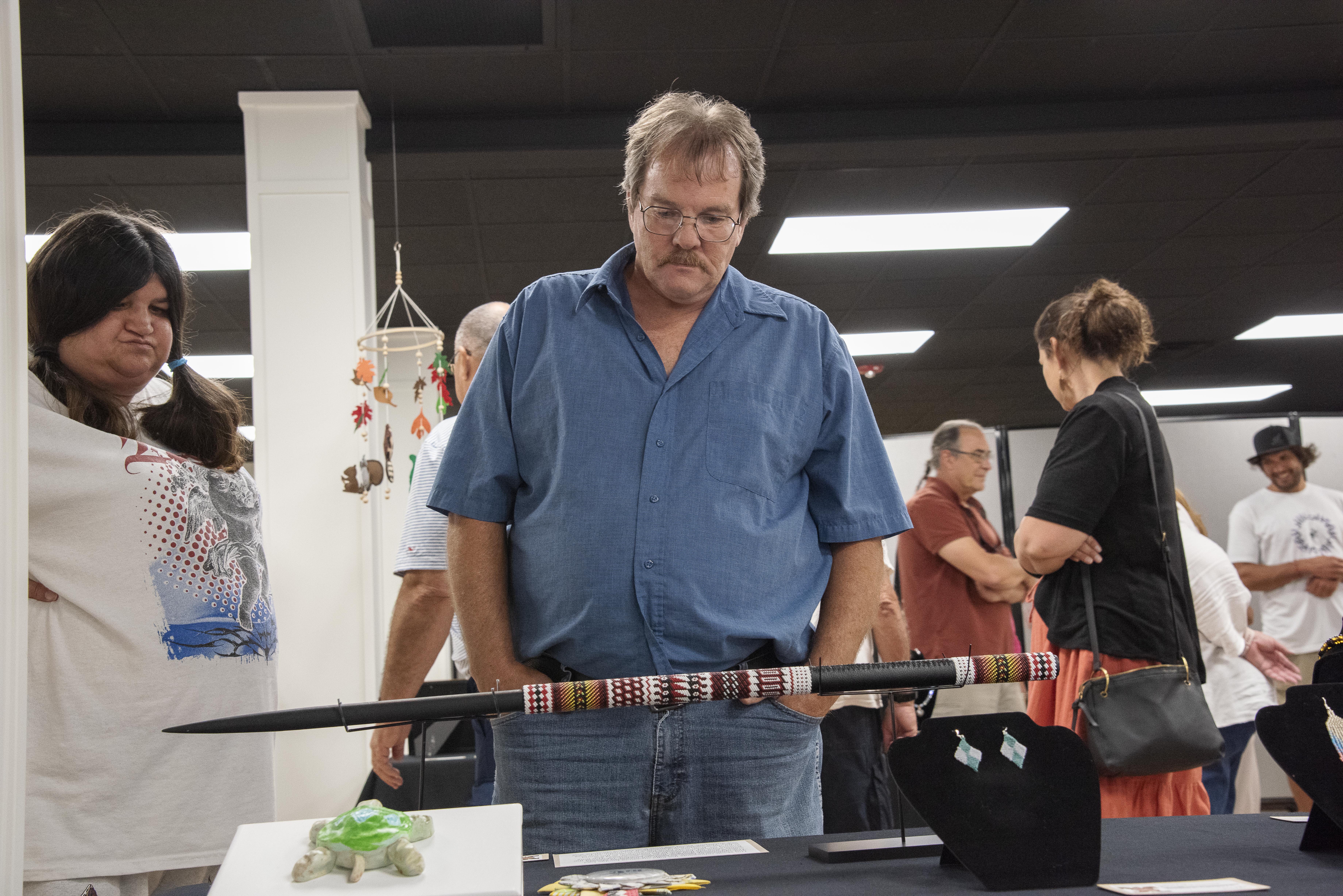 Kiiloona Myaamiaki placed 1st in its category at the art show this year. What was it like to receive that recognition for such a powerful piece? Kiiloona Myaamiaki had so much of myself and what I had learned of Myaamia people put into it. The spear design was chosen because it has been a personal, but also a community battle for us to continue to grow in our Tribal identity. Kiiloona Myaamiaki placing 1st in its category helped me validate that I truly am finding myself as a Myaamia person, and hopefully I can inspire others and help them as they grow in their identity.
