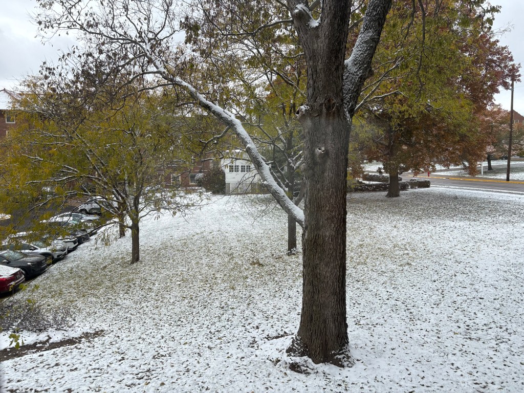 Today it is cold (33℉) and cloudy in the Great Miami River Valley. Last night it snowed and was really cold (23 ℉). This morning it also snowed. The snow covers the ground.